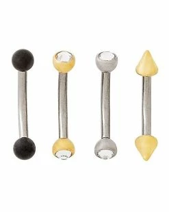 Hot Sale ✔️ Multi-Pack Black Spike and Round Titanium Curved Barbells 4 Pack – 16 Gauge ✨
