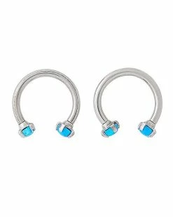 Promo 🔔 Blue Faux Opal Titanium Horseshoe Rings – 16 Gauge 👍