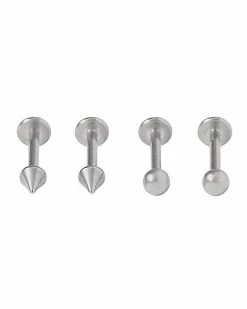 Discount ⭐ Multi-Pack Silvertone Ball and Spike Titanium Labret Lip Rings 4 Pack – 16 Gauge 😀