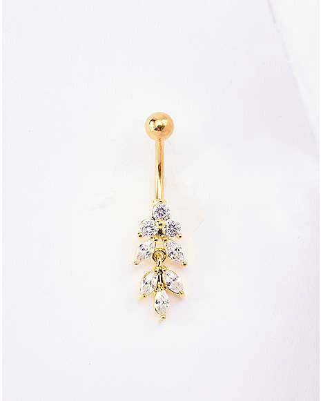 Best Pirce π Triple CZ Leaves Titanium Dangle Belly Ring – 14 Gauge π―