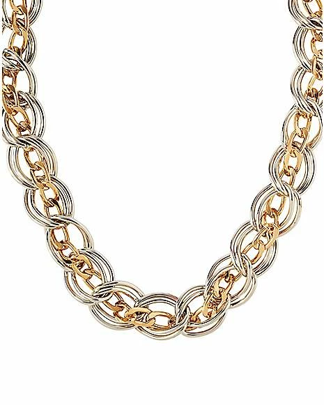 Budget π Two Tone Double Strand Curb Chain Necklace π