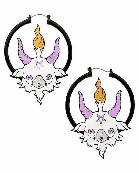 Buy π€© White Baby Baphomet Hoop Earrings – 18 Gauge β
