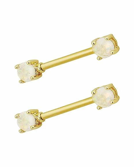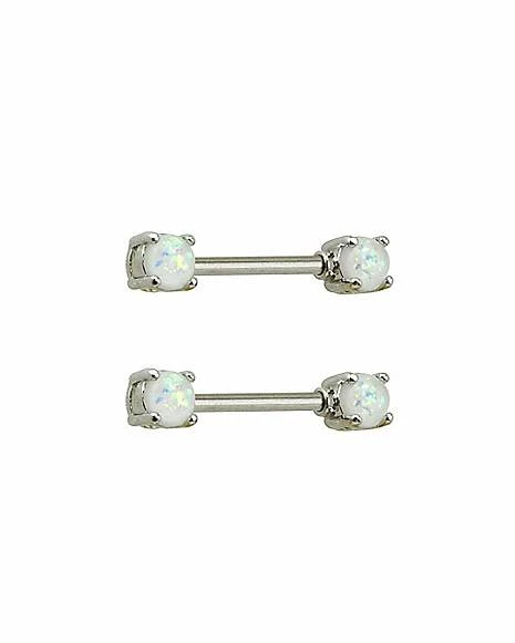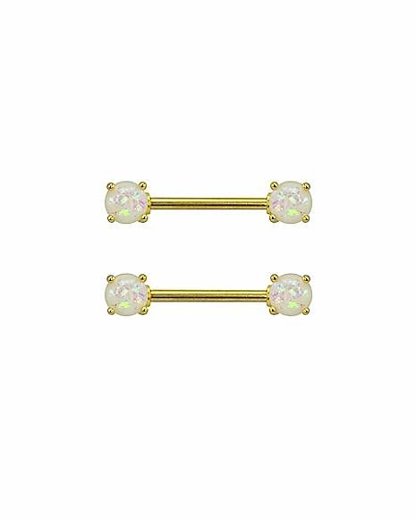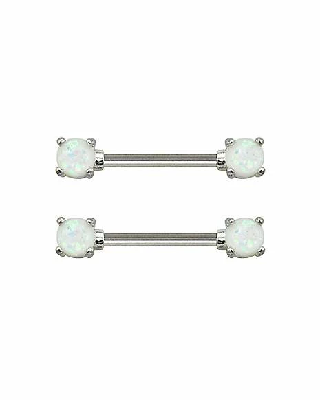 Outlet π White Opal-Effect Nipple Barbells 1 Pair – 14 Gauge β