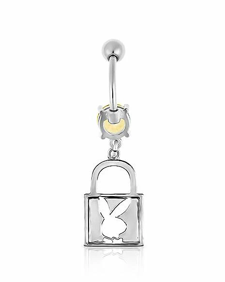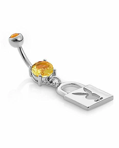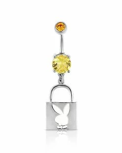 Best Sale β¨ Yellow CZ Playboy Bunny Lock Dangle Belly Ring – 14 Gauge π