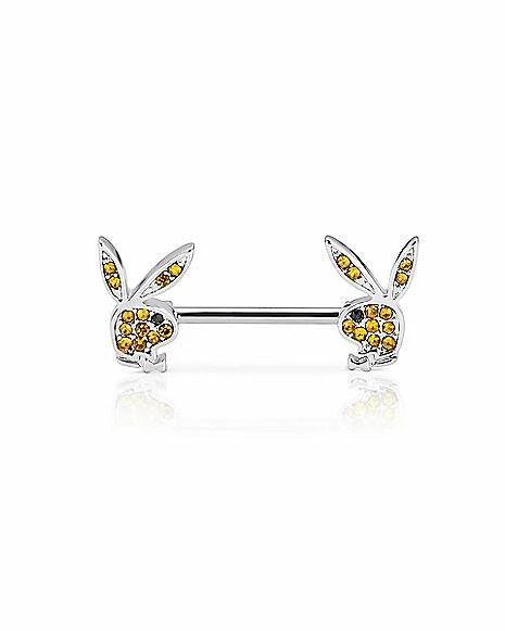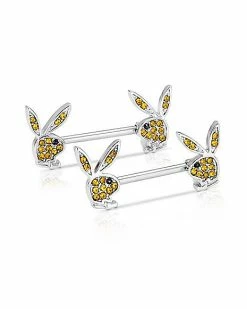 Cheapest β€οΈ Yellow Playboy Bunny Gem Nipple Barbells – 14 Gauge π